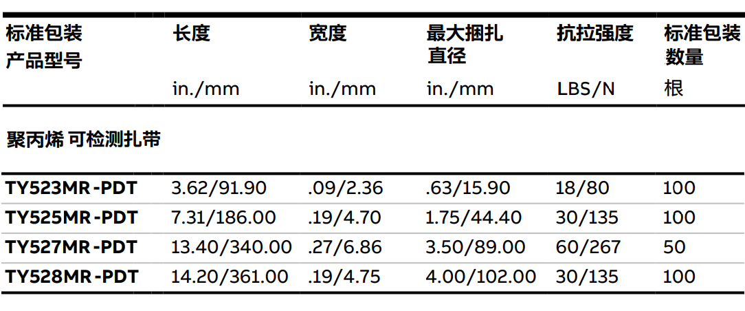 美國ABB通貝 Ty-Rap® 金屬可檢測扎帶 -- 聚丙烯材質(zhì)