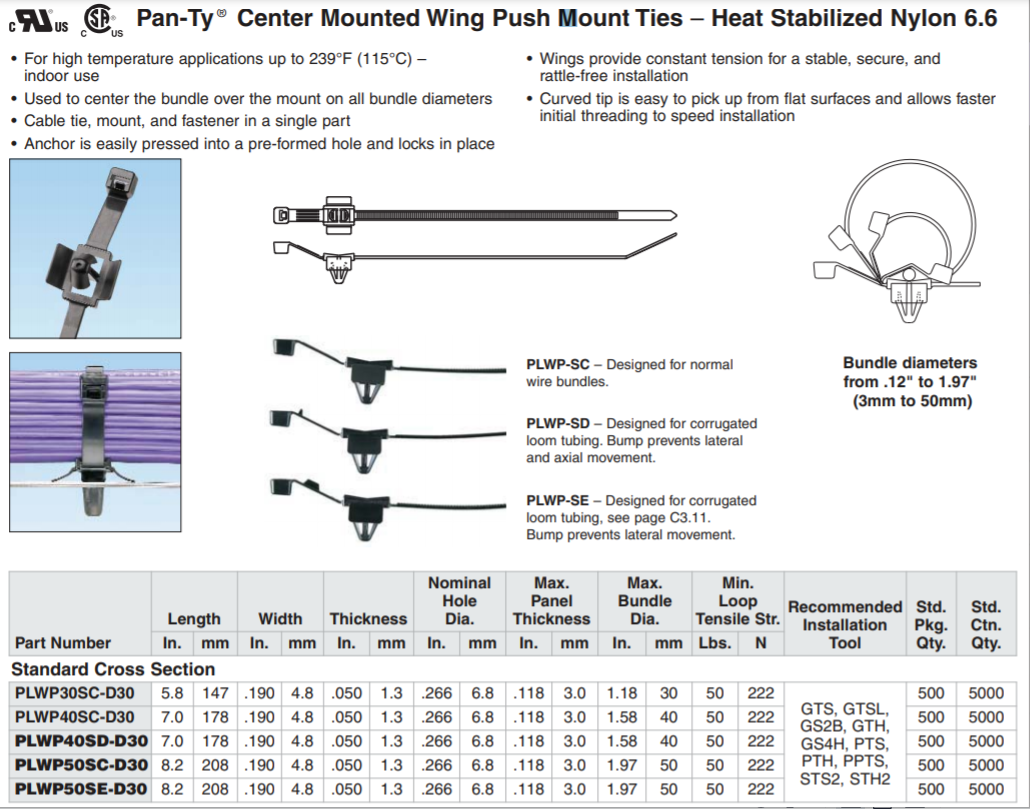 - 泛達中心穿入翼式按照式扎帶-熱穩(wěn)定性 Pan-Ty Center Mounted Wing Push Mount Ties – Heat Stabilized Nylon 6.6