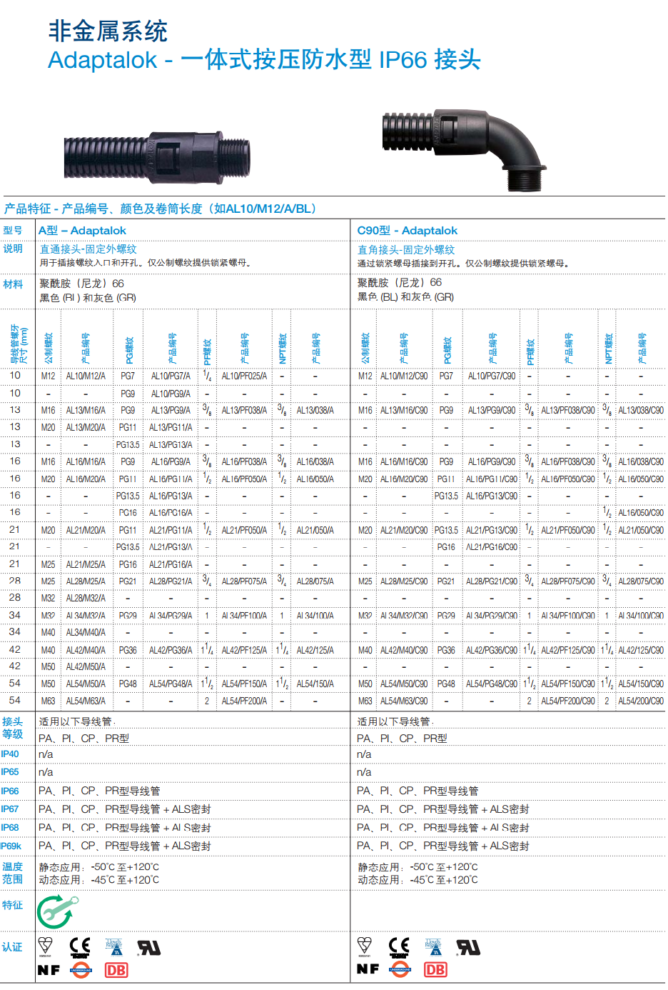 - 柔性導(dǎo)線管 -- 一體式按壓IP66防水型接頭 -- A型和C90型