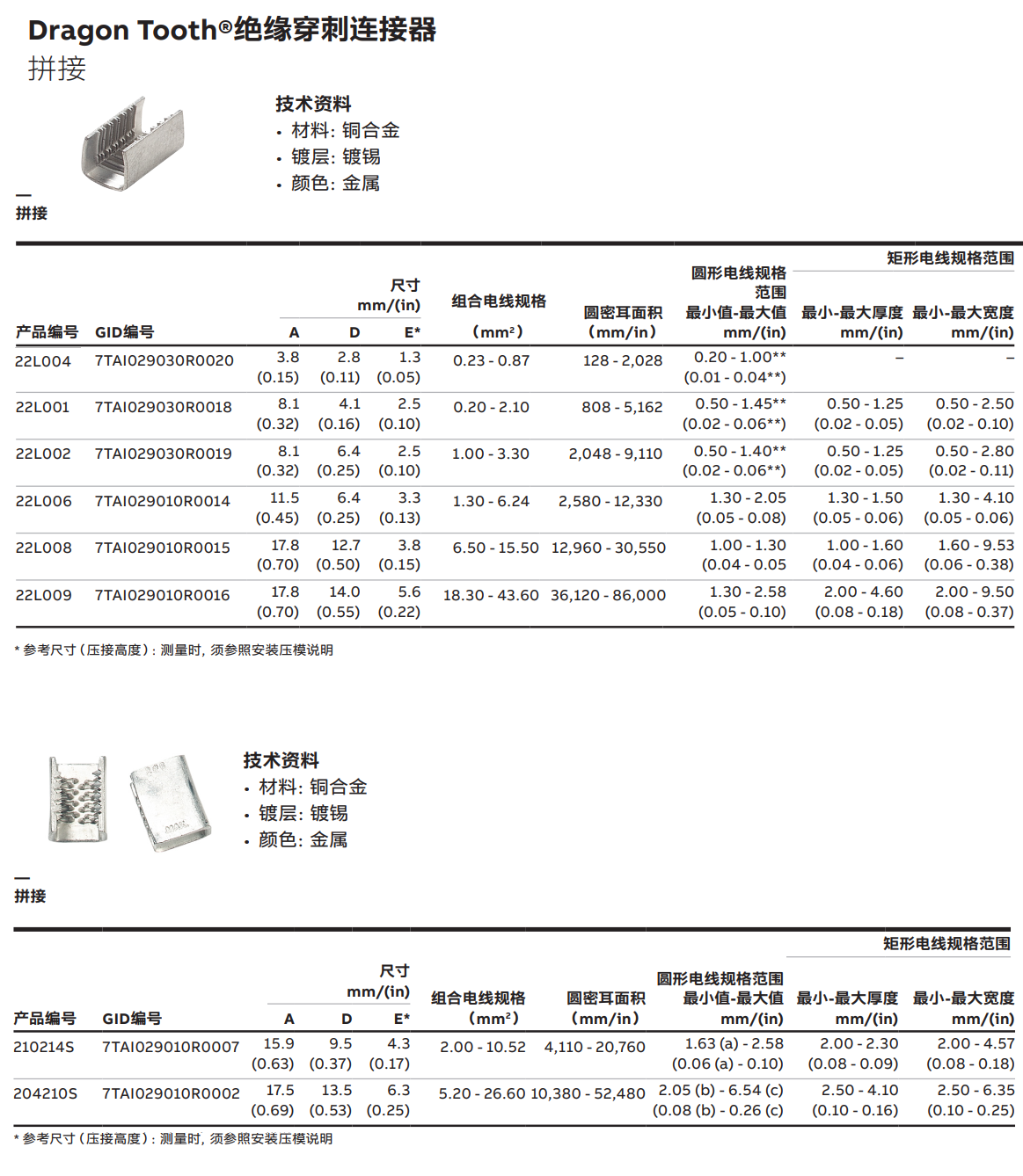 - ABB通貝Dragon Tooth 絕緣穿刺連接器-拼接端頭