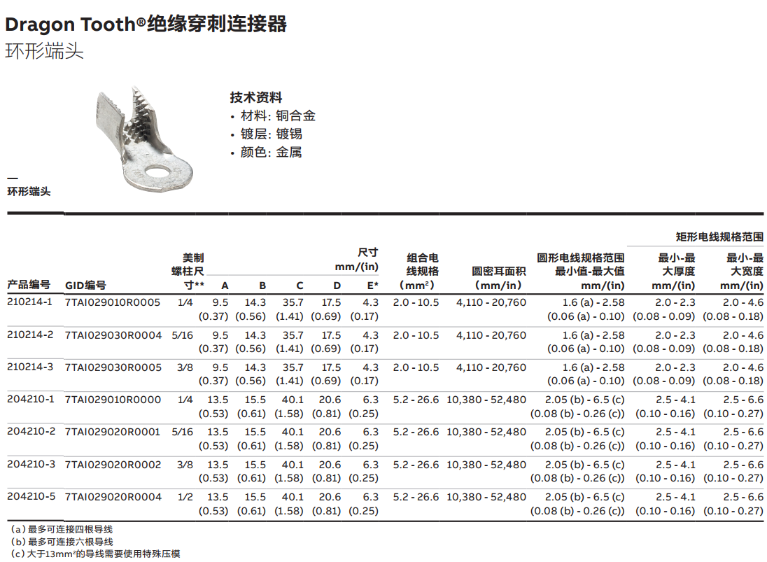 - ABB通貝 Dragon Tooth絕緣穿刺連接器 環(huán)形端頭
