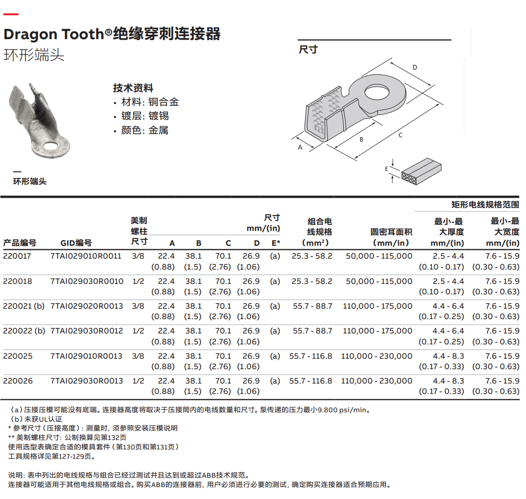 - ABB通貝 Dragon Tooth絕緣穿刺連接器 環(huán)形端子