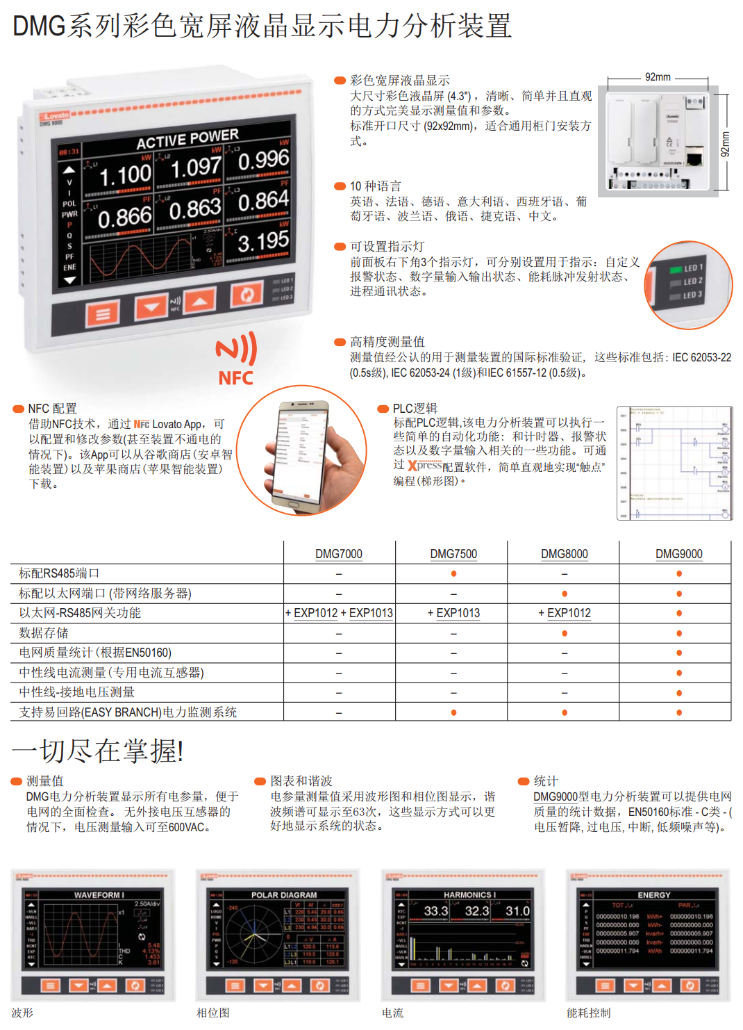 產(chǎn)品特點(diǎn): 彩色寬屏液晶顯示 柜面安裝 92x92mm 型號可選標(biāo)配RS485 通訊端口 型號可選標(biāo)配以太網(wǎng)和數(shù)據(jù)存儲(chǔ) 支持 EXP...擴(kuò)展模塊 帶NFC和光隔離端口 支持易回路(EASY BRANCH)電力監(jiān)測系統(tǒng)。